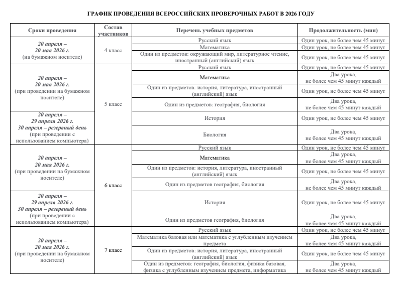 В 2026 году ВПР пройдут в период с 20 апреля по 20 мая. Они не будут пересекаться по срокам с проведением ЕГЭ.